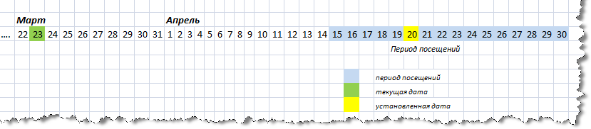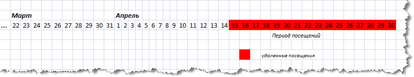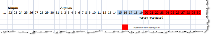При выборе пункта "Удалить циклические посещения" будут удалены посещения с 20.04.2011 по 30.04.2011.