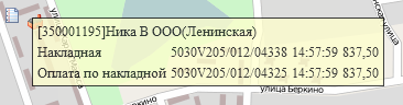 | Положение на карте торговой точки с временными координатами, при наведении курсора показывается информация о наименовании торговой точки и адресе торговой точки. |