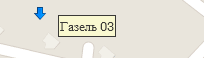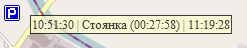 | Точка снятия GPS-активности, показывающая стоянку транспортного средства на маршруте, при наведении курсора показывается информация о времени снятия GPS-активности, времени стоянки и времени отправления далее по маршруту. |