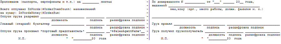 Отпуск груза произвёл_________ / $SalesAgentName ~¦ Груз получил грузополучатель _________ /___________________